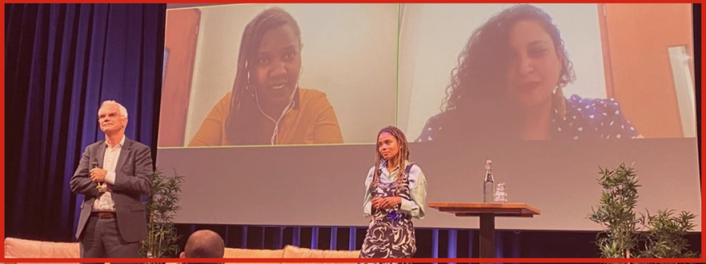 This year’s Festival was different. Due to recent changes in the world, the Festival was divided into an online part, hosted by Dzifa Kusenuh and Mariken Gaanderse and broadcasted live from the main stage of Pakhuis de Zwijger, and in-person sessions addressing core themes; communication, advocacy and learning & innovating. After the kick-off, Krizna Gomez took the stage to give an inspiring keynote on Hope Based Communications and foresight.