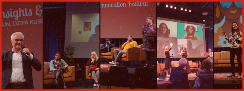 This year’s Festival was different. Due to recent changes in the world, the Festival was divided into an online part, hosted by Dzifa Kusenuh and Mariken Gaanderse and broadcasted live from the main stage of Pakhuis de Zwijger, and in-person sessions addressing core themes; communication, advocacy and learning & innovating. After the kick-off, Krizna Gomez took the stage to give an inspiring keynote on Hope Based Communications and foresight.